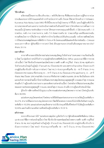 บ่า,ไหล่ ในกลุ่มตัวอย่างคนไข้วัยทำงานกลุ่มผู้ป่วยโรคออฟฟิศซินโดรม (Office syndrome) ที่มีอาการปวด