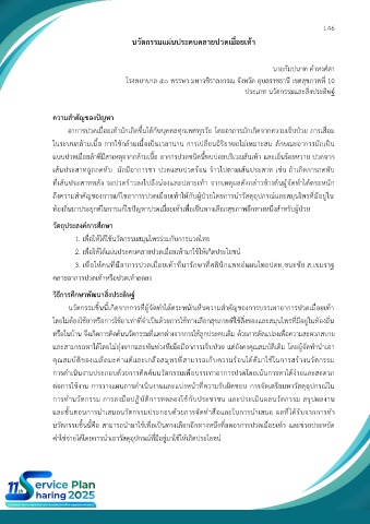 ถึงความสำคัญของการแก้ไขอาการปวดเมื่อยเท้าให้กับผู้ป่วยโดยการนำวัสดุอุปกรณ์และสมุนไพรที่มีอยู่ใน
