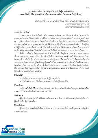 และหลอดเลือด และได้เปิดหน่วยบริการใหม่คือหน่วย (ICCU) จากการดำเนินงานศึกษาวิเคราะห์ปัญหาหน้างาน