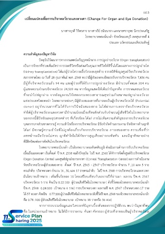 ปีพ.ศ. 2568 0.24:100 เป้าหมาย 6 ราย) การบริจาคดวงตา ผลงานปี พ.ศ. 2567 บริจาคดวงตา 17 ราย