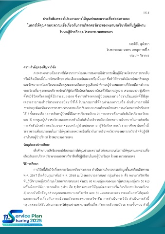 เพื่อศึกษาประสิทธิผลของโปรแกรมการให้คุณค่าและความเชื่อต่อสมรรถนะในการให้คุณค่าและความเชื่อ