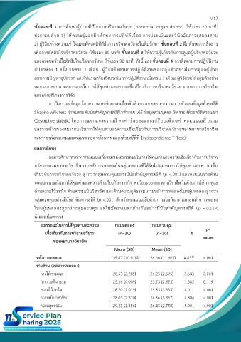 การร่วมกิจกรรม 25.16 (4.009) 23.73 (2.923) 1.582 0.119