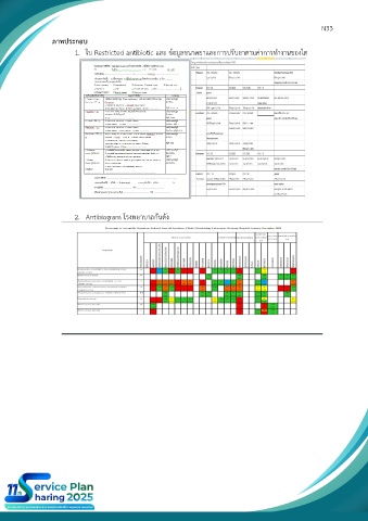 N33 ภาพประกอบ 1. ใบ Restricted antibiotic และ ข้อมูลขนาดยาและการปรับยาตามค่าการทำงานของไต 2. Antibiogram โรงพยาบาลกันตัง