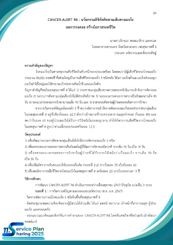 - ออกแบบแนวคิดและฟังก์ชันการทำงานของ CANCER-ALERT R8 โดยทีมสหวิชาชีพร่วมกับนักพัฒนา