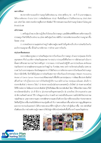จากการพัฒนารูปแบบการส่งเสริมสุขภาพการป้องกันมะเร็งปากมดลูก อำเภอกระทุ่มแบน จังหวัด