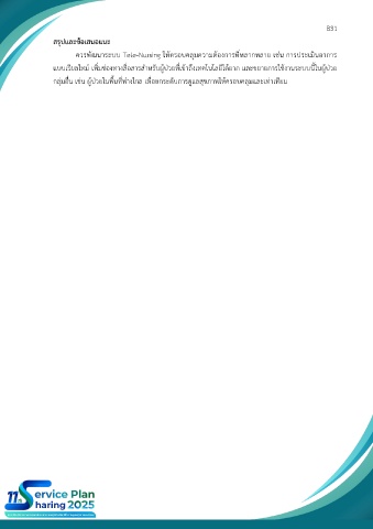 ควรพัฒนาระบบ Tele-Nursing ให้ครอบคลุมความต้องการที่หลากหลาย เช่น การประเมินอาการ