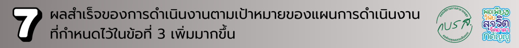7.1 ผลสำเร็จของการดำเนินกิจกรรมตามแผนปฏิบัติการฯ (ไม่น้อยกว่าร้อยละ 90)